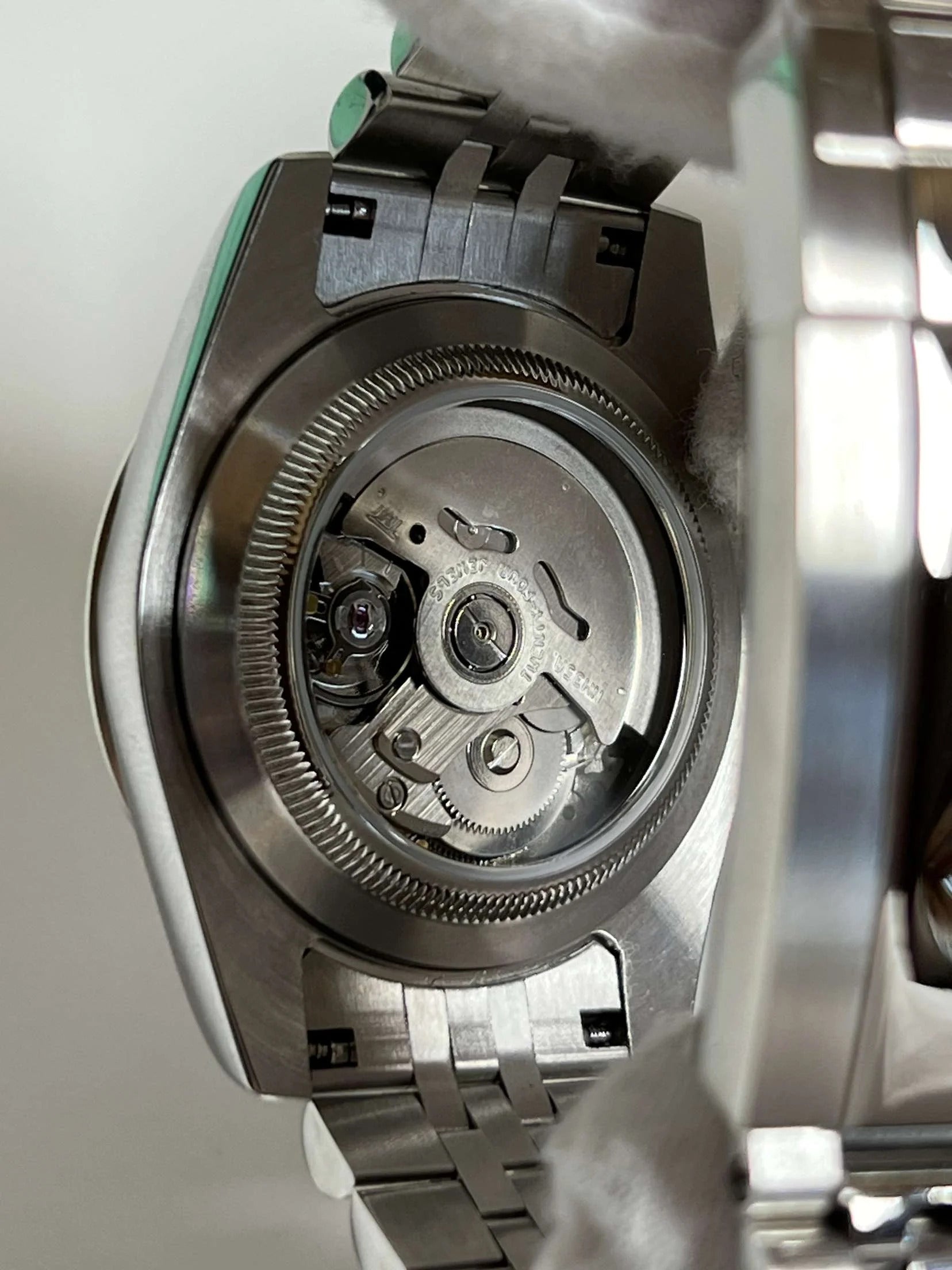 Blue OYSTER PERPETUAL aftermarket dial (custom) and stainless steel bracelet.
